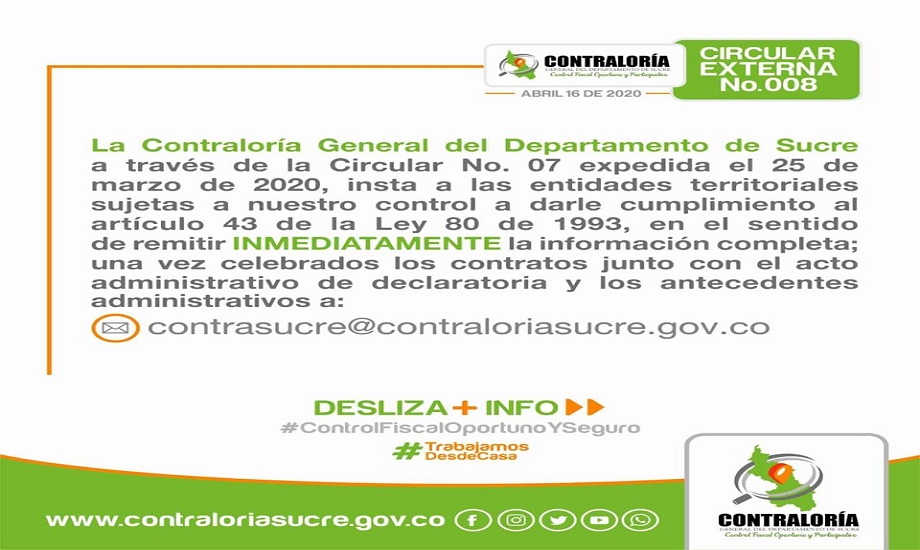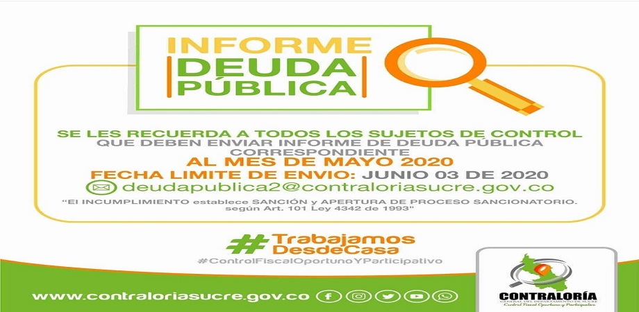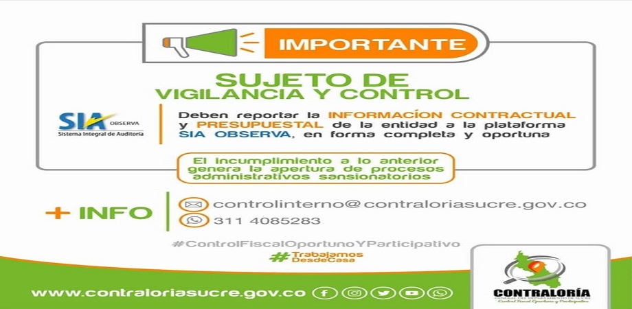 Muy pronto vencerá el plazo para la entrega de los Informes de Gestión Ambiental, la Contraloría del Departamento de Sucre, invita a todos los sujetos de control a presentar a tiempo cada uno de los Informes solicitados.