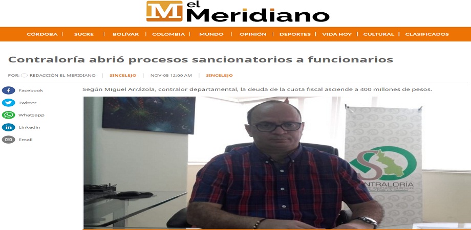 Leer mas...La Contraloria General del Departamento de Sucre, continúa ejerciendo un control fiscal visible a la comunidad. https://elmeridiano.co/noticia/contraloria-abrio-procesos-sancionatorios-a-funcionarios
